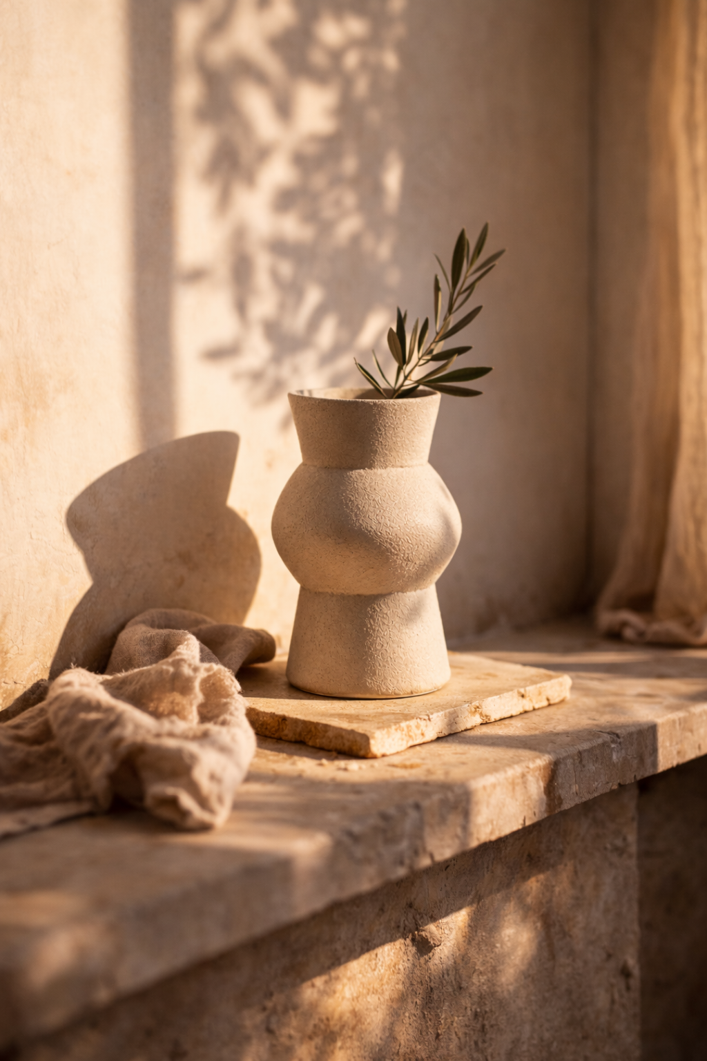 Inspirée par la matière et la simplicité, cette collection s’intègre parfaitement dans un intérieur épuré, entre minimalisme et influence méditerranéenne.
